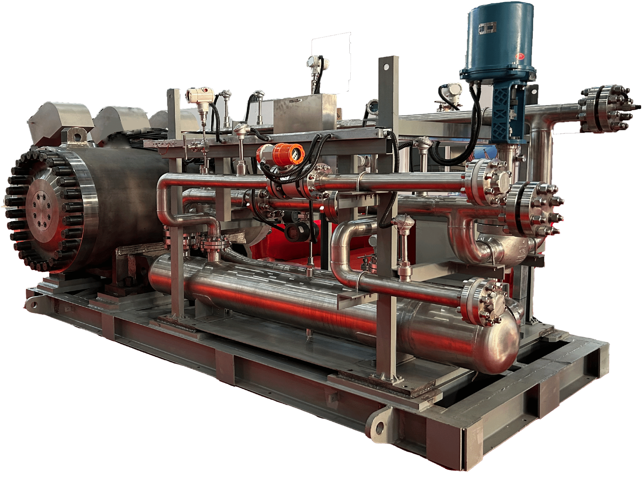 功 率:75kW工作壓力:7MPa壓 力 升:220kPa額定轉(zhuǎn)速:9800r/min標(biāo)況流量:23700 Nm3/h產(chǎn)品介紹:氦氣壓縮機(jī)是臥式三級(jí)離心壓縮機(jī),由高速異步電機(jī)驅(qū)動(dòng),電磁軸承支撐,整機(jī)密封,電氣接線由電氣貫穿件引出。氦氣壓縮機(jī)配置PLC系統(tǒng),用于對(duì)氦氣壓縮機(jī)進(jìn)行功能控制,并執(zhí)行上層DCS系統(tǒng)指令,完成氦氣壓縮機(jī)系統(tǒng)的啟停以及調(diào)速等功能,執(zhí)行輸送燃料球、輸送吸收球以及氦凈化系統(tǒng)等功能。在高溫氣冷堆中,氦氣壓縮機(jī)采用單堆雙機(jī)總體布置,...