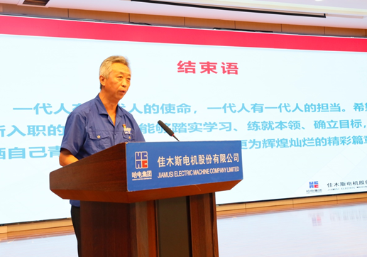劉清勇講述了公司的發(fā)展歷程、未來戰(zhàn)略方向及對青年人才的殷切希望。他指出,公司作為上市公司,特種電機(jī)的龍頭企業(yè),電機(jī)行業(yè)的領(lǐng)航者,公司的平臺是足夠廣闊的,會給每個有追求的人搭建實(shí)現(xiàn)人生價值的舞臺。劉清勇寄語新入職大學(xué)生,“一代人有一代人的使命,一代人有一代人的擔(dān)當(dāng)。希望新入職的大學(xué)生,能夠踏實(shí)學(xué)習(xí)、練就本領(lǐng)、確立目標(biāo),揮灑自己青春的汗水,去書寫佳電更為輝煌燦爛的精彩篇章”。