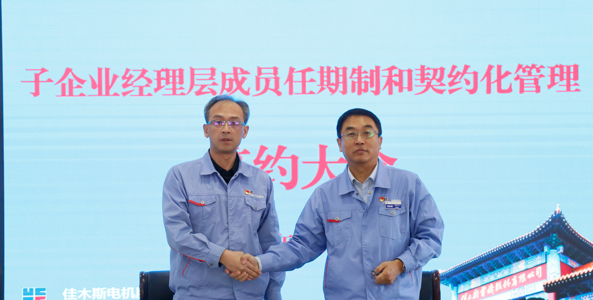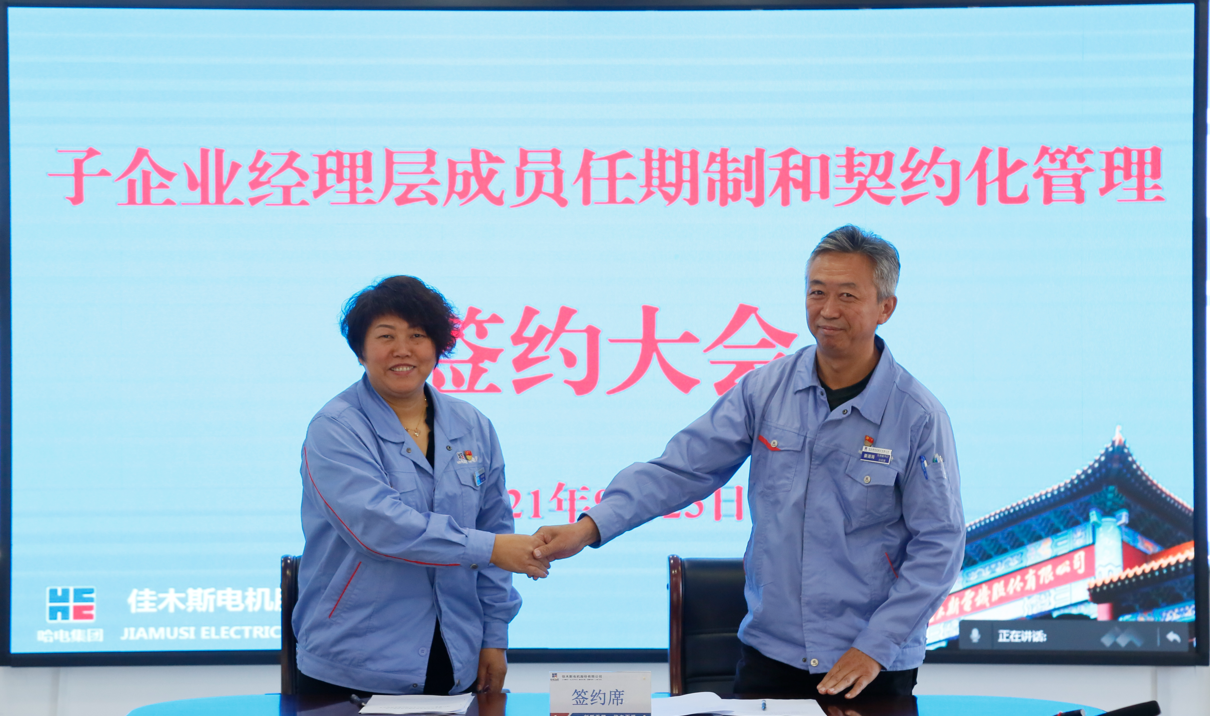 為深入落實(shí)國企改革三年行動(dòng)方案,貫徹哈電集團(tuán)關(guān)于子企業(yè)推行經(jīng)理層成員任期和契約化管理工作部署,確保“十四五”目標(biāo)任務(wù)落實(shí)落地。9月23日,佳電股份子企業(yè)經(jīng)理層成員任期制和契約化管理簽約大會(huì)在佳木斯、哈爾濱、蘇州和成都以視頻形式舉行。佳電股份董事長、黨委書記劉清勇出席會(huì)議并講話。佳電公司、成都佳電、蘇州佳電、吉林佳電、運(yùn)維科技五家子企業(yè)經(jīng)理層成員分別簽署了《崗位聘任協(xié)議書》和《經(jīng)營業(yè)績責(zé)任書》。