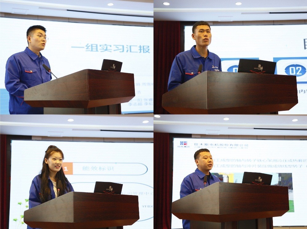 30位新入職大學(xué)生分為四個小組,通過PPT講解、視頻展示等方式,圍繞實習(xí)工作情況、存在問題、實習(xí)感悟、未來展望等方面,依次匯報了小組及個人在生產(chǎn)車間、財務(wù)部門、法務(wù)部門、銷售公司等崗位實習(xí)的學(xué)習(xí)成果,分享了自己在實習(xí)工作中的感受與經(jīng)驗,并對工作中發(fā)現(xiàn)的問題提出了合理化建議,同時對今后的工作做出了具體規(guī)劃。匯報中,新入職大學(xué)生向?qū)焸兊恼佌佒笇?dǎo)表示感謝,同時也感謝公司給予的良好成長平臺。