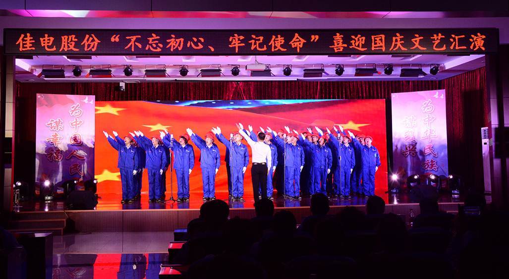 為慶祝中華人民共和國(guó)成立70周年,大力弘揚(yáng)愛(ài)國(guó)主義精神,歌頌偉大祖國(guó)發(fā)展成就,表達(dá)對(duì)祖國(guó)母親的赤子之情,9月28日,佳電股份黨委舉辦“不忘初心、牢記使命” 喜迎國(guó)慶文藝匯演。 17時(shí),伴隨著《沒(méi)有共產(chǎn)黨就沒(méi)有新中國(guó)》...